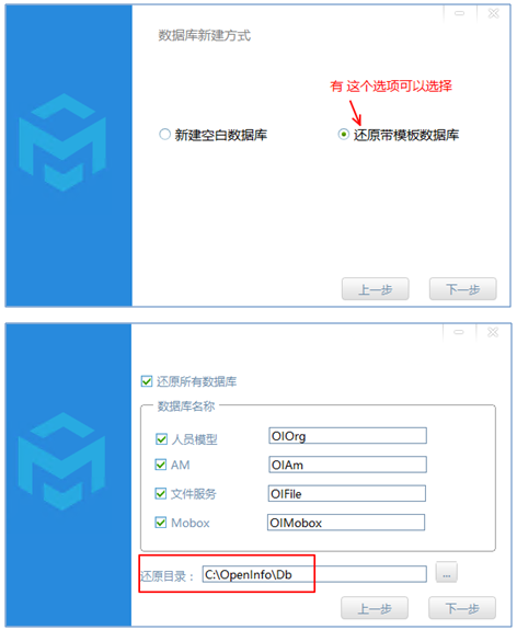 這些其實在企業系統正式部署前,需要做一些基本功能定義,這個定義后 ,最好對 OIAm、OIMobox、OIOrg、Oifile 等4個數據庫進行備份,直接還原到企業服務器上,這樣整體來說數據比較完整及正確。另外也相對方便。(注意:這種mobox還原的模式 只是適合與第一次系統部署。若用戶已經部署過了,已經有自己的數據了,這個bak還原的模式是不適合的,要切記??!