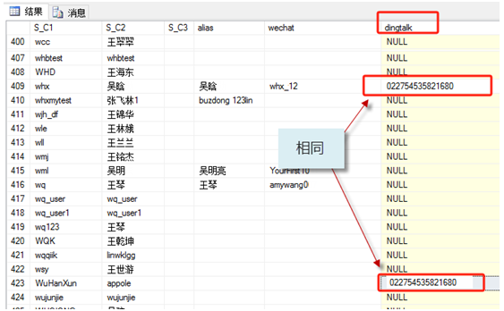 本次出現(xiàn)這個用戶不存在的原因,就是 ,因為 這2個記錄相同了造成的
