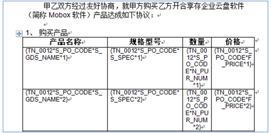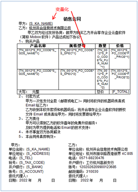 • 我們利用企業(yè)現(xiàn)有的合同模版,對里面的:甲方、乙方、采購清單、單價、總價等內(nèi)容先變量化。我們稱之為:格式化合同模版