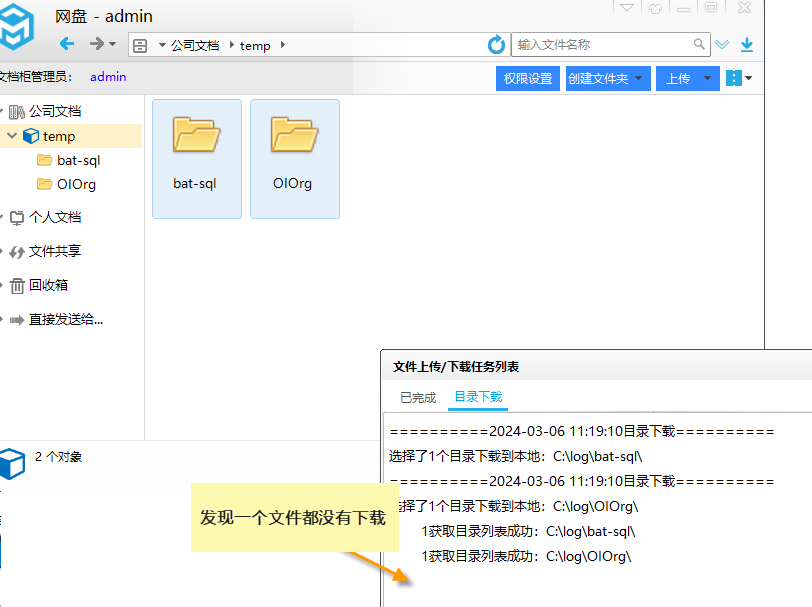 Mobox的文檔柜管理員,是具有對(duì)文件夾整體下載的(一般的角色是不能下載文件夾的)。但若出現(xiàn)文檔柜管理不能下載文件夾內(nèi)的文件。