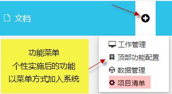 這里列出的有系統(tǒng)固有功能及二次開發(fā)功能。系統(tǒng)實施后的一些個性功能(如 項目菜單),可以以菜單的方式在這里列出。