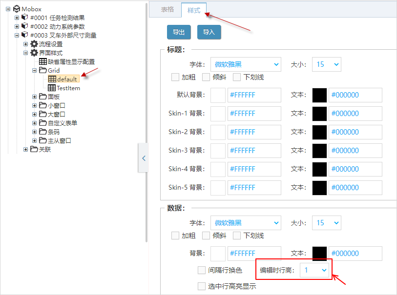 Mobox 3000功能點表格直接編輯的實現 2024/04/27 分類:產品中心 產品手冊 實施方案 612 3000 功能,可以點擊某一條記錄后,對這條記錄進行修改。但有的時候用戶這個數據是一個大表,希望能在全屏的模式下進行表格編輯,這樣會比較快 為此,系統可以實現表格直接輸入的功能。 實現方式如下 1)3000 功能點,綁定某數據類的grid 2)這個grid樣式中,需要定義,那些字段可以編輯 3)增加頁面按鈕,功能綁定 GridEdit 4)在輸入環節,點擊 頁面按鈕(輸入)就能進行表格直接輸入 5)格子編輯時的高度,可以在樣式里面定義 標簽:手冊 上一篇: Mobox 3000功能點頁面按鈕隱藏的lua實現方法 下一篇: 怎樣將ASP.NET Core Web API 部署到IIS