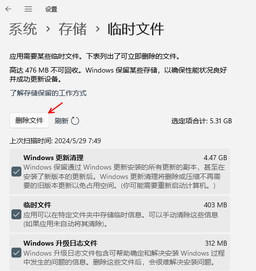 “系統(tǒng)”一“存儲”一“臨時文件”,進(jìn)入臨時文件頁面后,你可以選擇刪除這些臨時文件。這些臨時文件是暫時產(chǎn)生的系統(tǒng)文件,它們可能占用了你的電腦內(nèi)存空間