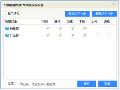 3)文件權限管理(權限包括:可見、展開、瀏覽、下載、上傳、編輯)
